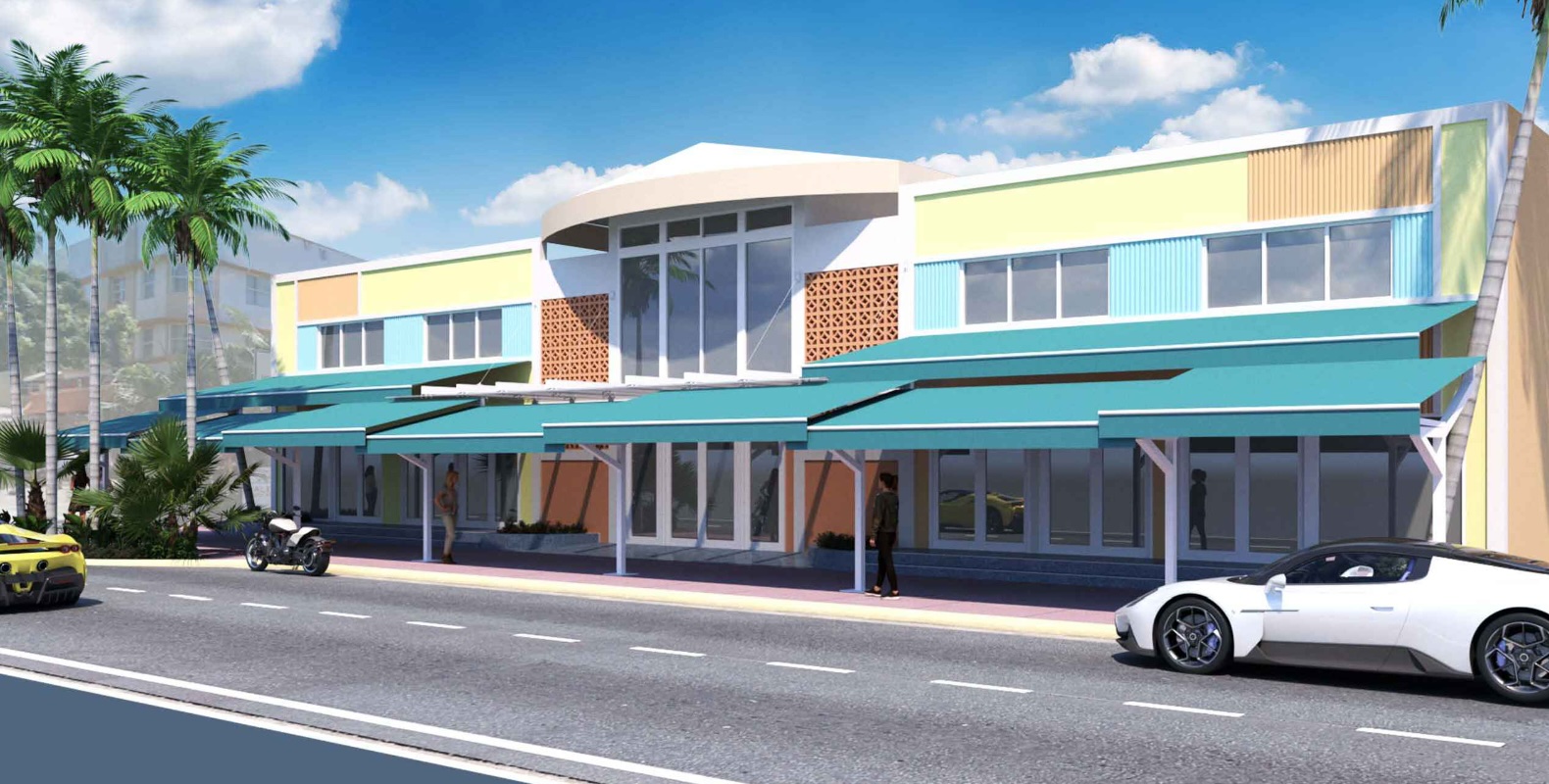 The restoration of the breezeblock is a positive and the storefront system also appears to be an improvement over the previous proposal. We also believe the colors of the building could be more muted to be more compatible with surrounding buildings.